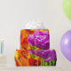 Colourful violet, purple, pink tulips on a flowerbed. Virtually all the rainbow colours present. Bright and positive floral scene. Wrapping paper