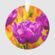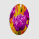 Colourful violet, purple, pink tulips on a flowerbed. Virtually all the rainbow colours present. Bright and positive floral scene. Macro photography.