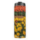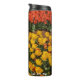 Close up view of yellow tulips with rows of red tulips in the background, flower photography home décor with customisable text to add your name and contact details, incase you lose your drink bottle ♥ webgrrl.art