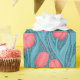 Tulips in blue and red wrapping paper
