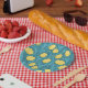 Tulips in blue and yellow paper plate