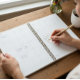 A wedding planner with a beautiful cover featuring two delicate tulips in Delft blue colours, symbolises love and new beginnings. The names of the bride and groom, elegantly scripted in flowing calligraphy, take centre stage, creating a personal and romantic touch