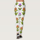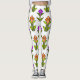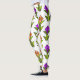 These leggings have an art deco design made from diamonds, triangles, and polygons making tulips in orange and purple with green stems and leaves.