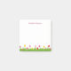 Tulip illustration of tulips in shade of pink and yellow in the green grass at the botton of the notes. Personalize with your name or message in deep pink purple font.