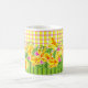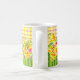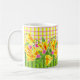 Add some springtime to your morning or anytime with this brightly coloured mug featuring yellow and orange parrot tulips and pink tulips. In the similar vein of the Dorothy Draper line, this floral and plaid mix is sure to delight the recipient as a gift for Mother's Day or birthday. Wow your guests at your table with an entire set of mugs! Look for coordinating pieces for the ultimate in unique table settings!