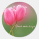 Two pink tulips nestled together against a green glass background. Easily add your own message to customise this sticker.