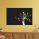 Wrapped canvas art is shown with a photo print of beautiful purple tulips.