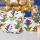 This wrapping paper has an art deco design made from diamonds, triangles, and polygons making tulips in orange and purple with green stems and leaves.