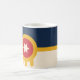 Mug with a design with the flag of Tulsa, Oklahoma. A beige and navy blue flag with a gold Osage shield containing a red circle and a beige six-pointed star