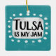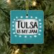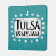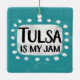 "Tulsa Is My Jam" is a fun text design with a white accent shape surrounded by white whimsical textured dots.