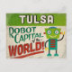 A funny Tulsa Oklahoma vintage travel postcard featuring a friendly robot with fun retro style text that says, "Tulsa, Robot Capital of the world!"