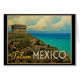 The Mayan ruins of Tulum, Mexico on the Yucatan Peninsula are enhanced by the enticing green-blue water of the Caribbean sea in this vintage travel image.