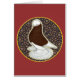 This baldhead Muffed Tumbler pigeon stands out from its patterned circle.