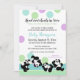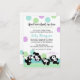 Adorable tumbling black and white panda bears baby shower invitation, "head over heels in love" with baby on the way design. Colourful and fun gender neutral baby shower invitation in teal, lime and purple.
