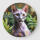 Pictured with ferns is Tuna the hairless Sphynx Canadian cat