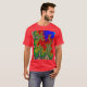 I give wanted to give this a 4 instead of a 5 because these Basic DARK T0shirts run unexpectedly SLIM or Narrow. Which is great if you do not have a potbelly, but I have a paunch. It isn't the shirt's fault that I've got a beer belly. The design and shirt itself is a quality cotton shirt. The color is more of a deep purple, but still a very pretty color. The Basic DARK T-shirts run a bit SLIMMER than the Basic Ts. The neck is a fraction narrower (or seems to be narrower) also. I'm a paunchy middle-aged woman and my neck is 12 inches (31cm) thick and the neckline fell about the same as in the photo of the man, and I had the desire to tug it a bit. So if you're a thick necked man or like loose shirts, be aware these are slimmer shirts. Once I get rid of my lockdown paunch it'll look great. The shirt washed well in cold water with no apparent bleeding. We don't have a dryer, so it hung dry. Did not shrink. Love the colors and the design. The design looks smaller on my shirt than it does on the model on-line. But still, it looks good on the shirt. The printing looks as it does on the model, just the size seems fractionally smaller. Washed garment in cold water, hung dry and design appeared unaffected.