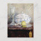 A fine art postcard with the painting by the French artist Berthe Morisot (1841-1895) titled, Tureen and Apple (1877). An impressionist still life with a crystal goblet, a blue and white tureen and a green apple on a sideboard.
