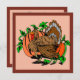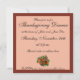 Thanksgiving invitation illustrated turkey standing in from of a pumpkin with vines.