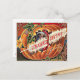This turkey is all about surprises, jumping out of a pumpkin. This vintage Thanksgiving print depicts a turkey jumping out of a pumpkin with a feather in his mouth. Flowers on the edge of the print.