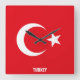Turkey Flag Dazzling Patriotic Square Wall Clock in the colors and the elements of the Turkey national flag covering the front of the clock. National flag colors are complemented with the text "Turkey" on the bottom. Text is fully customizable using "Customize it!" feature. Feel free to change it, remove it or add your own. This charming design is the stunning gift and the great show piece on the wall. © 2024 CountriesOfTheWorld