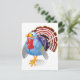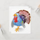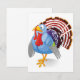 A turkey standing proud. This is a very colourful cartoon style turkey. It has an amusing expression on its face and is showing all its feathers and colours. This turkey design looks great on these invitations