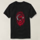 I give wanted to give this a 4 instead of a 5 because these Basic DARK T0shirts run unexpectedly SLIM or Narrow. Which is great if you do not have a potbelly, but I have a paunch. It isn't the shirt's fault that I've got a beer belly. The design and shirt itself is a quality cotton shirt. The color is more of a deep purple, but still a very pretty color. The Basic DARK T-shirts run a bit SLIMMER than the Basic Ts. The neck is a fraction narrower (or seems to be narrower) also. I'm a paunchy middle-aged woman and my neck is 12 inches (31cm) thick and the neckline fell about the same as in the photo of the man, and I had the desire to tug it a bit. So if you're a thick necked man or like loose shirts, be aware these are slimmer shirts. Once I get rid of my lockdown paunch it'll look great. The shirt washed well in cold water with no apparent bleeding. We don't have a dryer, so it hung dry. Did not shrink. Love the colors and the design. The design looks smaller on my shirt than it does on the model on-line. But still, it looks good on the shirt. The printing looks as it does on the model, just the size seems fractionally smaller. Washed garment in cold water, hung dry and design appeared unaffected.