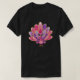 I give wanted to give this a 4 instead of a 5 because these Basic DARK T0shirts run unexpectedly SLIM or Narrow. Which is great if you do not have a potbelly, but I have a paunch. It isn't the shirt's fault that I've got a beer belly. The design and shirt itself is a quality cotton shirt. The color is more of a deep purple, but still a very pretty color. The Basic DARK T-shirts run a bit SLIMMER than the Basic Ts. The neck is a fraction narrower (or seems to be narrower) also. I'm a paunchy middle-aged woman and my neck is 12 inches (31cm) thick and the neckline fell about the same as in the photo of the man, and I had the desire to tug it a bit. So if you're a thick necked man or like loose shirts, be aware these are slimmer shirts. Once I get rid of my lockdown paunch it'll look great. The shirt washed well in cold water with no apparent bleeding. We don't have a dryer, so it hung dry. Did not shrink. Love the colors and the design. The design looks smaller on my shirt than it does on the model on-line. But still, it looks good on the shirt. The printing looks as it does on the model, just the size seems fractionally smaller. Washed garment in cold water, hung dry and design appeared unaffected.