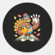 Turkey Playing Bowling Thanksgiving Turkey Tail Bo Classic Round Sticker