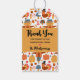 Gift tags with a seasonal fall pattern, Corn, mushrooms and flora. Along with turkeys and scarecrows to honour the Thanksgiving tradition.