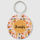 A key chain with a seasonal fall pattern, Corn, mushrooms and flora. Along with turkeys and scarecrows to honour the Thanksgiving tradition.