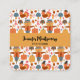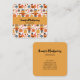 A business card with a seasonal fall pattern, Corn, mushrooms and flora. Along with turkeys and scarecrows to honour the Thanksgiving tradition.