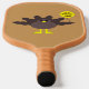 This awesome Pickleball Paddle features a funny cartoon of a turkey with big black eyes, a small yellow beak and tail feathers sticking up. The feet are facing in opposite directions making the turkey look clumsy. The turkey is holding a yellow balloon with a message inside that says “it’s turkey time”. This is a fun thanksgiving party design.