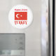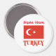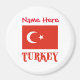 Personalised round magnet features the Turkish flag. Below, the word TURKEY appears in red letters. Space for a name above, in red letters, for added personalisation or to help you create a customised gift. Wonderful for mementoes of family reunions, travel groups, and clubs. Fun stocking stuffer at Christmas. Celebrate your heritage in a simple, but cool, way.