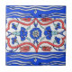 Turkish Border Patterned Tile delightful on its own, yet used together, this tile makes a stunning border design when used en masse. From an antique slightly offset print, something that adds it's own character to this tile which is derived from an Ottoman design. Iznik type. The design isn't exactly symmetrical, the pattern is a bit offset... it is these qualities that usually mark handmade items. This isn't handmade but mimics and exaggerates those imperfections. Please see our other patterned tiles, from Turkish to William Morris. Zap Time www.zazzle.com/zaptime