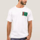 The front of this t-shirt bears a small Turkmen flag with its familiar white crescent and stars on a green background with decorative vertical band towards the hoist, while the back displays a relief map of Turkmenistan. Available on t-shirts, sweatshirts, polos, long-sleeves and more.