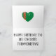 This card is great fun and good quality. I loved the humour inside and on the back. There is the opportunity to change the orientation of this card from landscape to portrait, which I did. It is relatively straightforward to amend the typeface to fit the new orientation. It was well packaged with no plastic. The printing on this card is excellent.