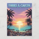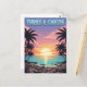 A vibrant tropical sunset over the ocean in Turks and Caicos, with silhouetted palm trees framing the scene.
