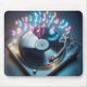 A vibrant display shows a turntable with glowing, colourful musical notes emanating from the spinning record
