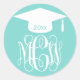 Turq Aqua Vine Script Monogram Graduation DIY BG Classic Round Sticker