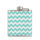 Turq Aqua Wht Chevron Coral Quatrefoil 3 Monogram Hip Flask