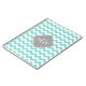 A stylish, modern, chic chevron zig-zag pattern in aqua / turquoise and white. Customise the grey quatrefoil label with a three initial monogram or change the design to add your name or other text. (Click on "Customise it" to change the font, adjust font sizes, font colours, add additional text fields, etc.)