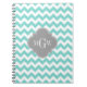 Turq / Aqua Wht Chevron Grey 3 Initial Monogram Notebook