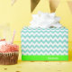Turquoise / Aqua and White Chevron ZigZag Pattern, Lime Green Ribbon Name Monogram Label