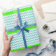 Turq / Aqua Wht Chevron Lime Name Monogram Wrapping Paper