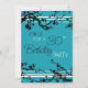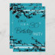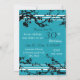 30th birthday party invitation card in elegant turquoise and black floral pattern, delicate and stylish with flowering tree design. Customisable with your party details.