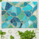 "turquoise teal blue green", "aqua abstract mosaic tiles", "gaudi inspired tiled seaglass", "sea glass beach house", "sea ocean beachhouse vibe", "modern stylish elegant sophisticated", "contemporary tile art", "stain glass inspiration", "stained glass inspo decor",