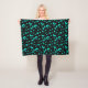 Turquoise Alien Pattern with Stars and Moons Fleece Blanket