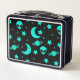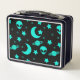 Turquoise Alien Pattern with Stars and Moons Metal Lunch Box