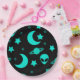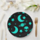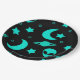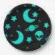 Turquoise Alien Pattern with Stars and Moons Paper Plate