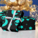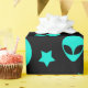 This vibrant alien and space pattern features glowing turquoise elements against a deep black background, creating a bold and otherworldly aesthetic. The seamless design includes classic extraterrestrial heads, crescent moons, stars, Saturn-like planets, and radiant starbursts, all arranged in a playful cosmic layout. The bright teal accents pop dramatically against the dark backdrop, giving the pattern a futuristic and sci-fi inspired feel. Perfect for fans of UFO lore, outer space themes, and celestial motifs, this repeating design captures the mystery and wonder of the universe in a striking, modern style.